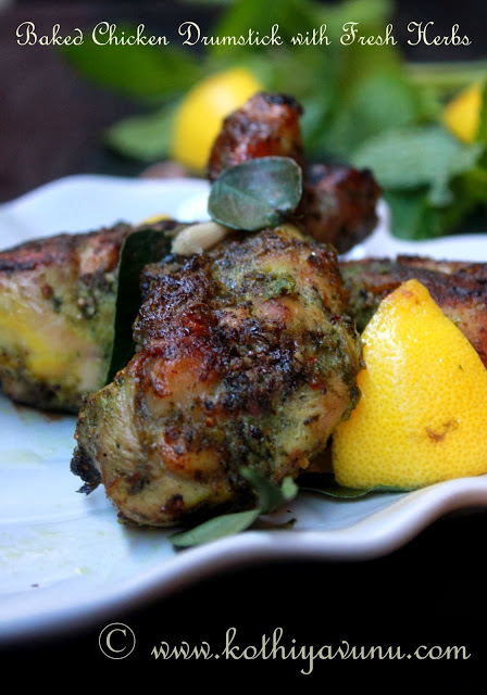 Baked Chicken Drumsticks with Fresh Herbs | Kerala Style Baked Mint Coriander Chicken Drumstick Recipe