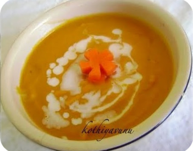 Carrot Ginger Coconut Milk Soup Recipe Ingredients : Carrots : 4 nos (peeled and chopped) Onions : 1 (big,chopped) Garlic : 2 cloves (minced) Grated ginger : 3"piece or 2 tbsp Cumin powder : 1/4 tsp Fennel powder : 1/4 tsp Black Pepper powder : 1 tsp Vegetable Stock/Water : 4 cups Coconut Milk : 1/4 cup Fresh lemon juice : 2 tbsp Olive Oil /Butter : 1 tbsp Salt to taste How to make Carrot Ginger Coconut Milk Soup : 1. In medium saucepan; add chopped carrots with vegetable stock pr water and ... continue reading...